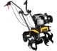 Моторное управление осуществляется механической 4-уровневой (3 вперед и 1 назад) коробкой передач с жестким переключением скоростей, выжим сцепления — ручной. От силовой установки работает гидравлический насос, передний механизм — от 3 гидроцилиндров. Подвеска расположена на рамных подушках.